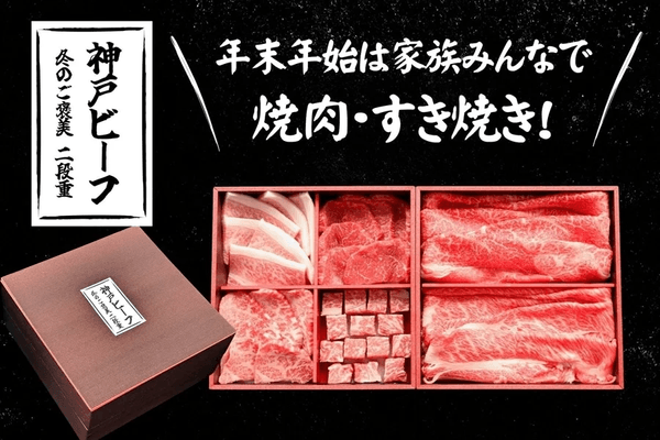 神戸ビーフは兵庫県内で指定生産者により生産される優れた但馬牛を素牛として県内の熟練した農家が高度な肥育技術を駆使してつくりだした最高牛肉です。そんな神戸ビーフを焼肉用に4種、すき焼き用に2種詰め込み二段重にしました。おいしさそのまま瞬間冷凍したものをお届けしますので、お好みのタイミングでお楽しみいただけます。