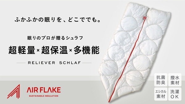 キャンプや車中泊だけでなく防災用としても使える”エシカルで多機能なシュラフ”です。