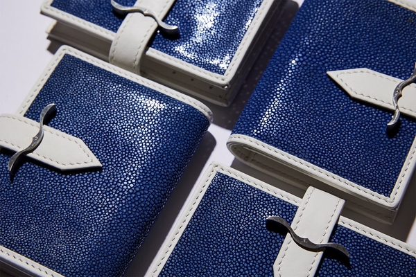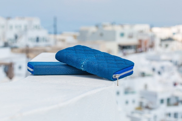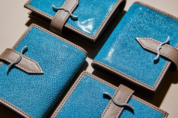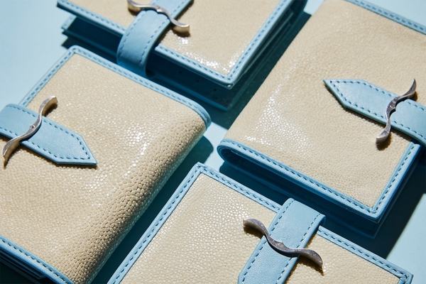 サスティナブルでラグジュアリーなエイ革(別名:スティングレイ/ガルーシャ)を使用した遊び心と高級感が漂うプレミアムなミニウォレット。波の煌めきを感じさせるユニークな表情をもつスティングレイに、シンボリックなベルトバックル。バックルの中央にはダイヤモンドを添えて。