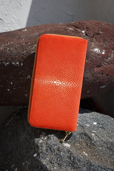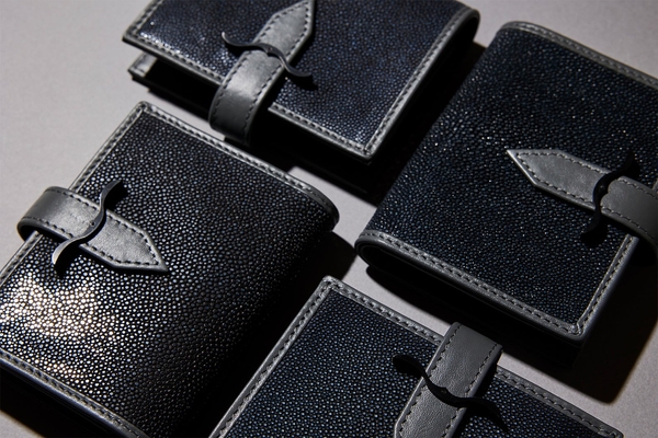 宝石のように美しい輝きをもつスティングレイ(エイ革)。それはジュエルレザー(革の宝石)とも称され、私たちを魅了し続けます。LONVAはポリッシュ(研磨加工)はあえて少なめに抑えることで煌めきとナチュラル感を両立。その煌めきは天然石のようで、自然と持つ人の美しさを際立たせてくれます。胸元や手指を華やかにするジュエリーのように財布やバッグも持っていただきたい。そんな想いで製品をデザインしています。