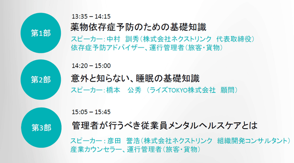 【薬物スクリーニング検査サービス】を提供するネクストリンクの運輸安全セミナー「運輸の安全を守る睡眠・メンタル・依存症予防の基礎知識」開催のお知らせ