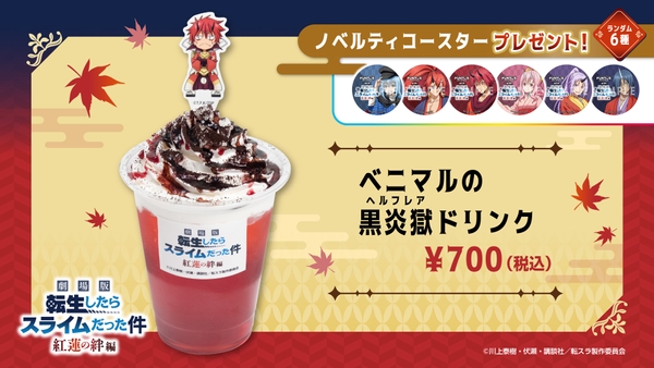 ベニマルの必殺技「黒炎獄」をイメージしたドリンクです。グレナデンシロップを織り交ぜたクランベリージュースに、フランボワーズ、チョコレート、ココアパウダーをトッピング。