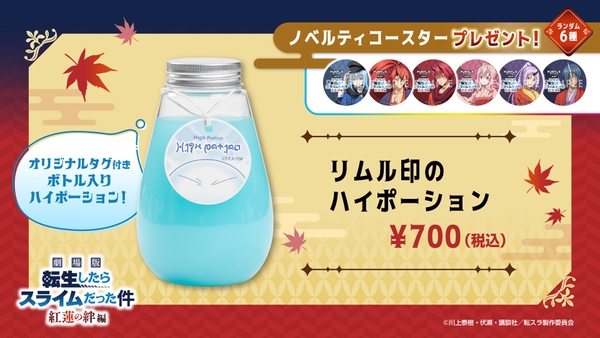リムルが作成したハイポーションをイメージしたドリンクです。カルピスをベースにブルーキュラソー、ナタデココが入っています。