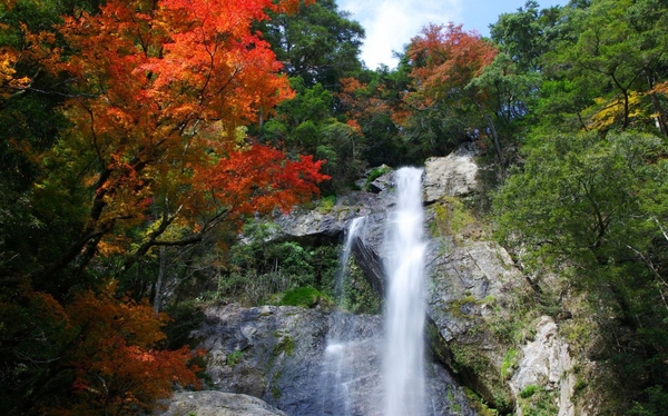 落差38mの「梅の木轟の滝」と呼ばれる滝と、紅葉の組み合わせは必見です。