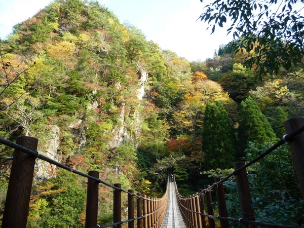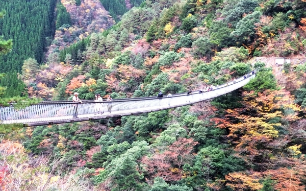 切り立った山間部に架けられた橋で全長166m、なので渡る際には大きく揺れます。