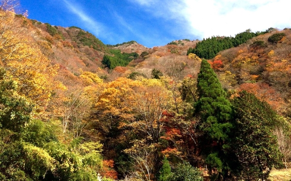 紅葉祭の時期、山々に生息しているモミジやカエデ、ドウダンツツジ、ブナなどが赤や橙色に染まった様子は一見の価値があります。