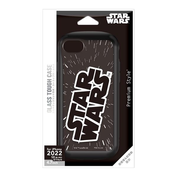 「STAR WARS」ロゴデザインのiPhone本体の色を活かせるクリア仕様のiPhone SE 第3世代用のガラスタフケースです。背面にシールや写真を入れて自分好みにカスタマイズすることもできます。MIL規格(MIL-STD-810G)の2項目、落下・振動に準拠した試験をクリアした、耐衝撃&耐振動設計です。サイド部分はやわらかく丈夫なTPU素材でボタン周りもしっかり保護、着脱も簡単です。ガラスが万一割れてしまっても、安全な飛散防止加工済みで、お手持ちのストラップをつけて落下を防げるストラップホール付きです。