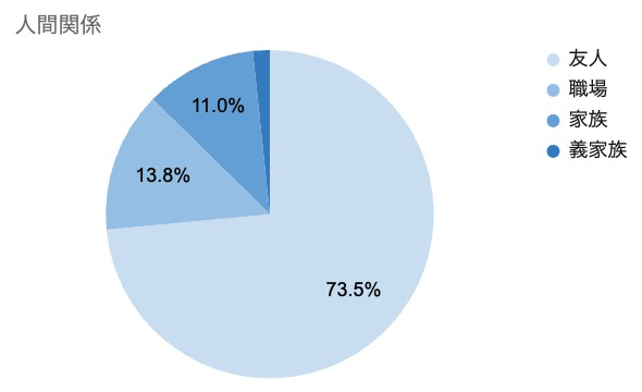 人間関係というカテゴリに分けると、7割以上が友人関係で悩んでいることが判明。