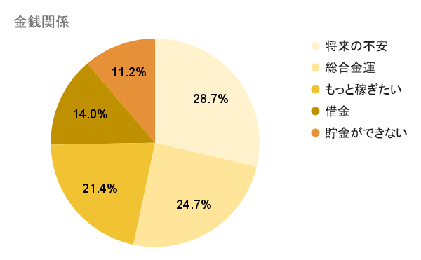 1位の「将来の不安」から5位の「貯金ができない」まで合わせた全体で見ても、金銭関係で何かしらの不安を抱えている人からの相談が多いという結果に。