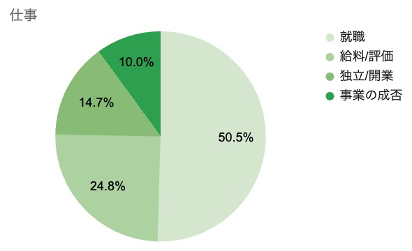 「就職」についての相談が50.5%で約半数を占め、仕事カテゴリ内において第1位に。