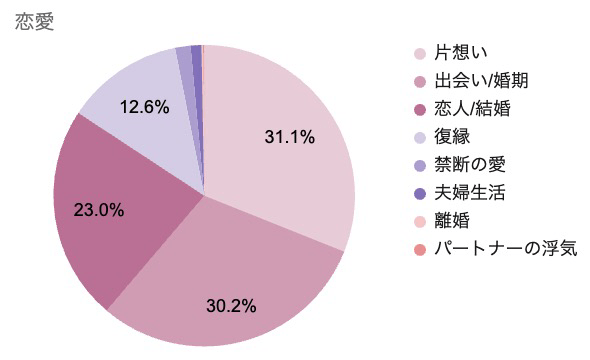 1位の「片想い」と2位の「出会い/婚期」で、全体の6割以上を占める結果に。