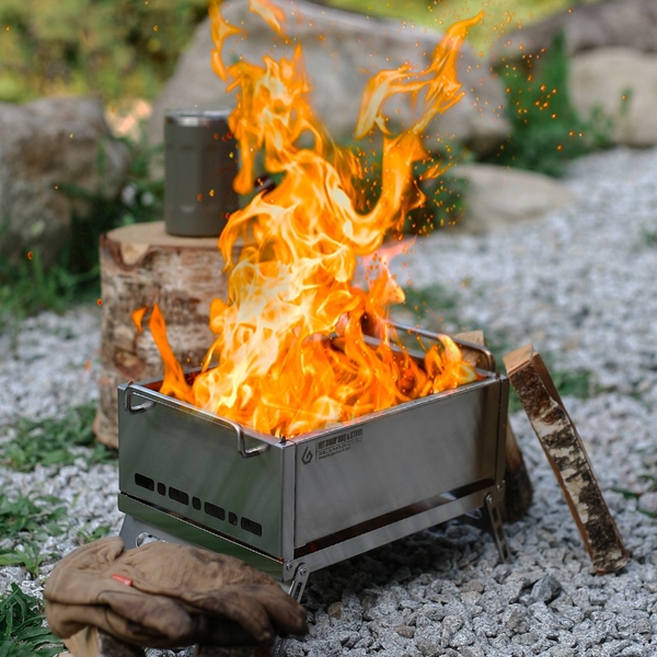 「3WAY GRILL」の焚き火台機能は、3次燃焼構造を採用しています。一般的な焚き火台では不完全燃焼により発生する煙や臭いが問題となりますが、本製品では空気の流れを最適化し、一次燃焼で発生した未燃焼ガスを二次、三次と段階的に燃焼させることで、煙や臭いを大幅に削減しています。焚き火の臭いや煙が苦手で敬遠してきた方にもおすすめです。同じ量の薪やペレットでも、一般的な焚き火台に比べて、より長く、より力強い炎を維持できます。