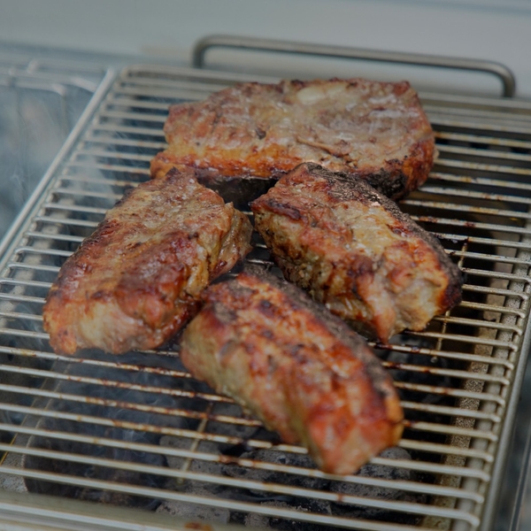 水受けを設置することで、脂の炎上や煙の発生を抑制します。また、お肉は水受けから発生する蒸気によって熱が和らぎ、しっとりジューシーに焼きあがります。さらに、水受けを設置することで、脂や炭のカスが水に落ちるので、グリル自体がよごれにくく、後片付けも簡単です。