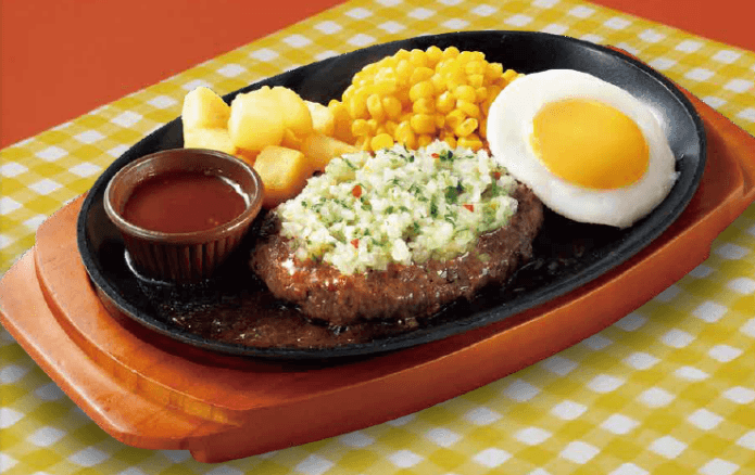 つなぎを最小限にすることで、赤身本来のおいしさを追求した牛100%ハンバーグ。玉ねぎベースの野菜と醤油風味のソースで、あっさりとお召し上がりいただけます。ランチにぴったり、手軽に満足できる一皿です。
