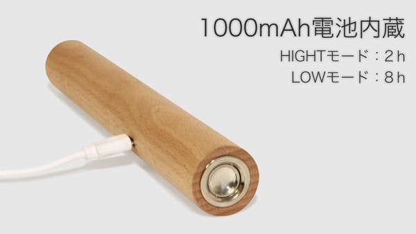 約3時間で満充電。最も明るい状態で2時間、最も暗い状態で最大8時間使用可能です。