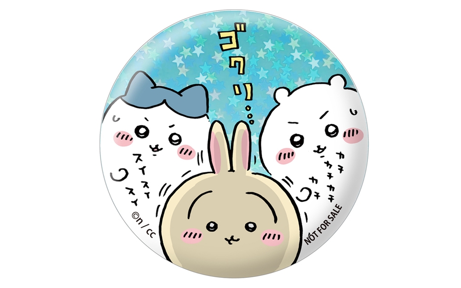 ②『ちいかわらんど 仙台店パルコ』で商品ご購入のお客様、税込3,300円以上の方には、「ホログラム缶バッジ(ゴクリ…)(非売品)」を1会計につき、1個プレゼント!!