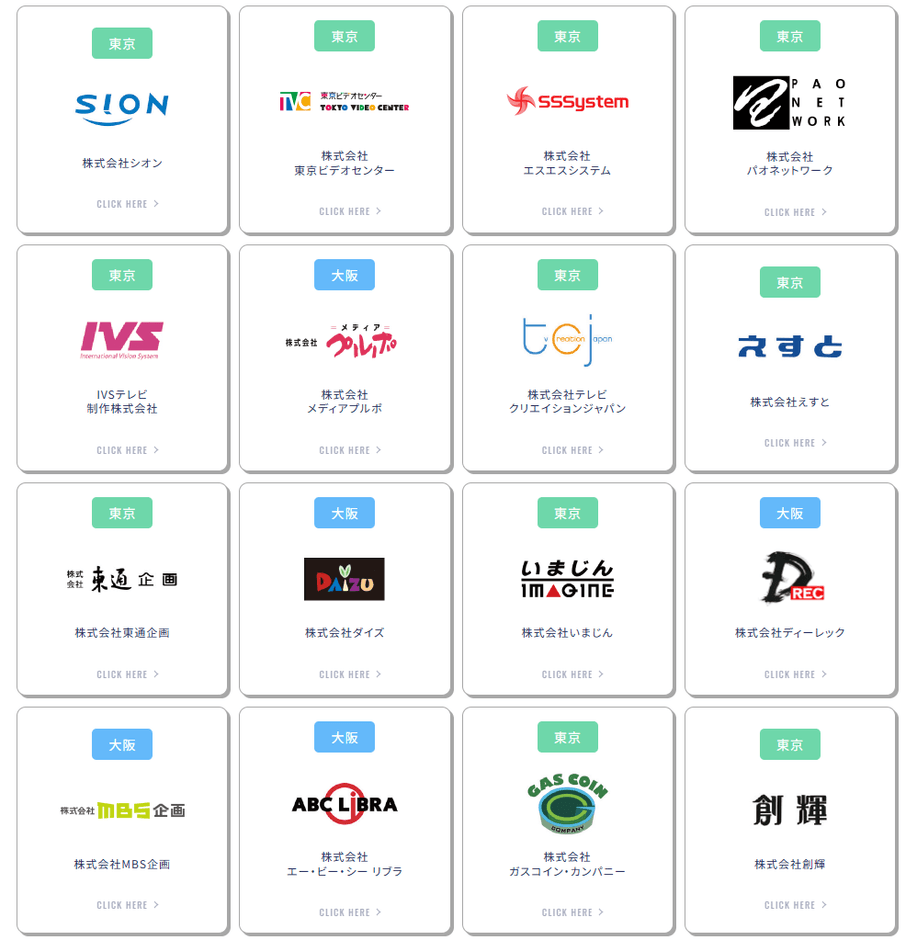 本イベントには、ATP正会員社より東京・大阪で活躍する制作会社あわせて31社が参加予定です。