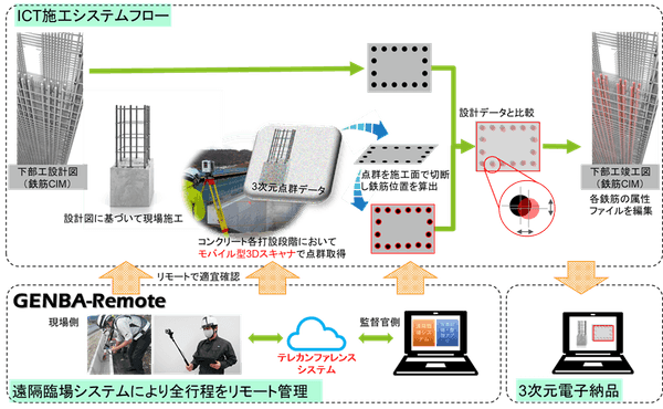鉄筋設計 CIM※ から出来形 CIM を生成し遠隔臨場にて施工管理できる DX 技術プロジェクト