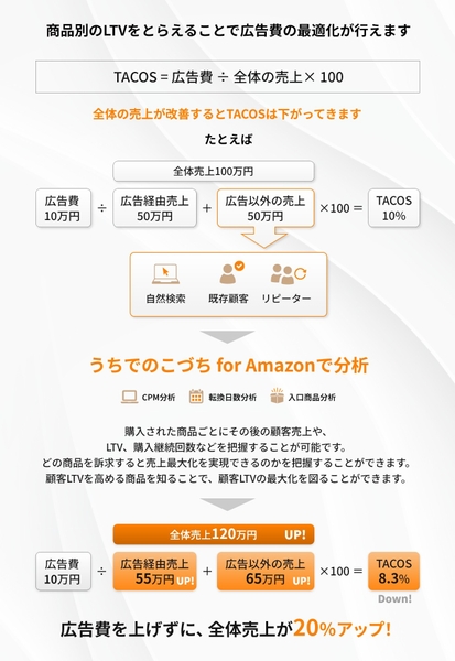 本ツールは、Amazonに出店しているEC企業の LTV最大化 を支援し、リピーターの増加と収益性向上を実現する新しいデータ分析ソリューションです。