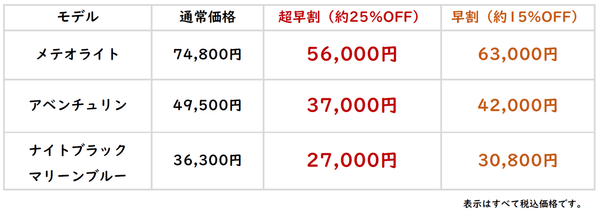 Makuake限定・最大25%OFFの早割プライス