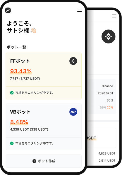 高度な数学的手法を用いてデータ解析を行う「クオンツ専門家」が独自開発した戦略でロボットが自動売買を行い、ユーザーの代わりに24時間365日、暗号資産市場をモニタリング・取引することが特徴である。