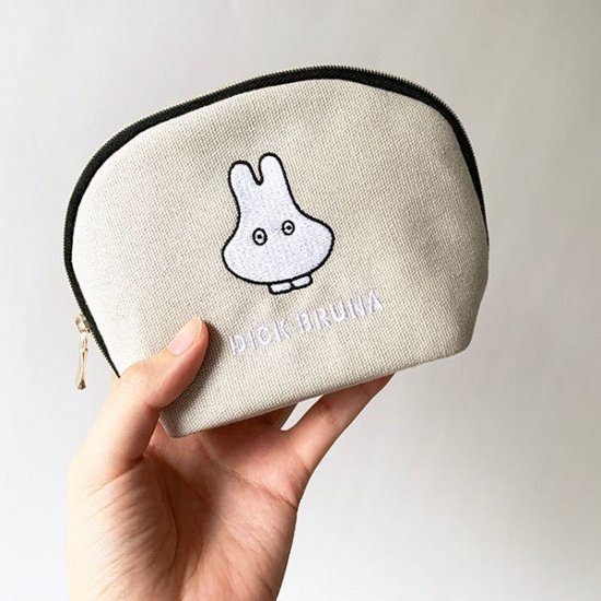 さきほどご紹介したトートバックと同じくキャンバス生地で出来た、ラウンドポーチです♪周りががばっと開くので大きめの化粧品も入ります。かさばらないのもポイント☆