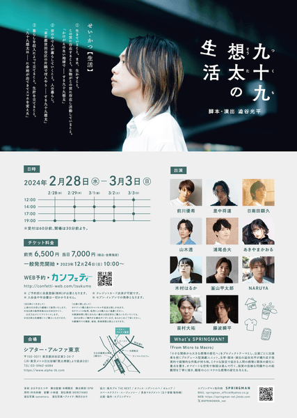 前川優希主演 スプリングマン新作公演『九十九想太の生活』全キャスト・フライヤー公開 カンフェティでチケット発売
