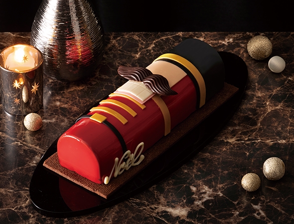ベルギー王室御用達の「ピエール マルコリーニ」。カカオの豊かなアロマとビターチョコレートの苦みにカシスの酸味、マロンの風味がバランスよく調和。鮮やかな赤いデコレーションの上には雪の結晶を象ったオーナメント。聖夜の夜を華やかに彩る、ピエール マルコリーニならではのクリスマスケーキを販売。