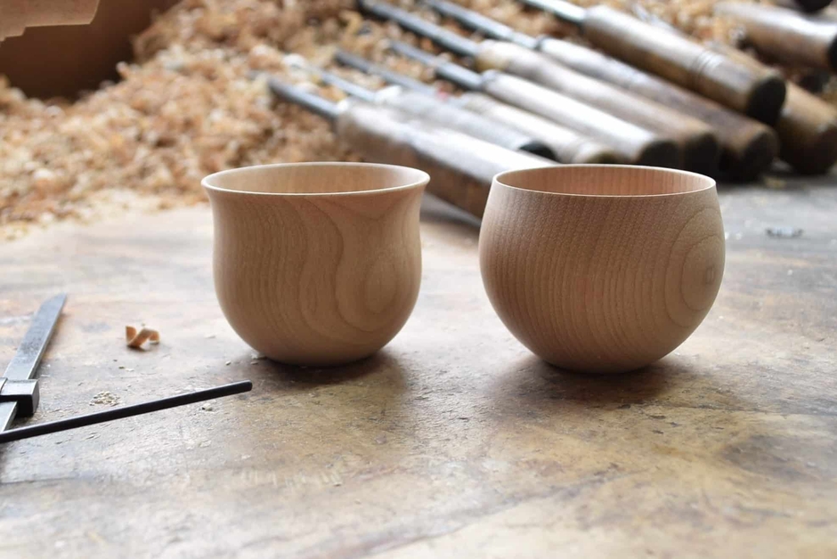 今回は普段お見せする事の無い、木地師の工房とその手業をご覧いただきます。準備している2種類の形の中からお好きな形をろくろで削り、形にしますので、その時の木を削る音、見る間に形が変わっていく様子はダイナミックで思い出に残る体験となると思います。本来は出来上がったばかりの器を木のまま使うことは出来ないのですが、今回は特別に木の香りが残る素朴な器を夕食の乾杯にお使いいただけます。さっき出来上がったばかりの器で飲むドリンクは格別ですので、ぜひ体験してみて下さい。