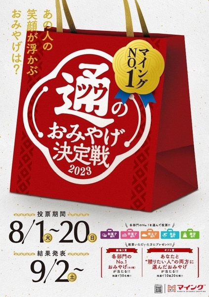 九州最大級のおみやげ処「マイング」では、2022年に17,649票を集めた「マイングNo.1通のおみやげ決定戦2023」を開催します!