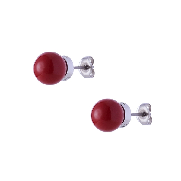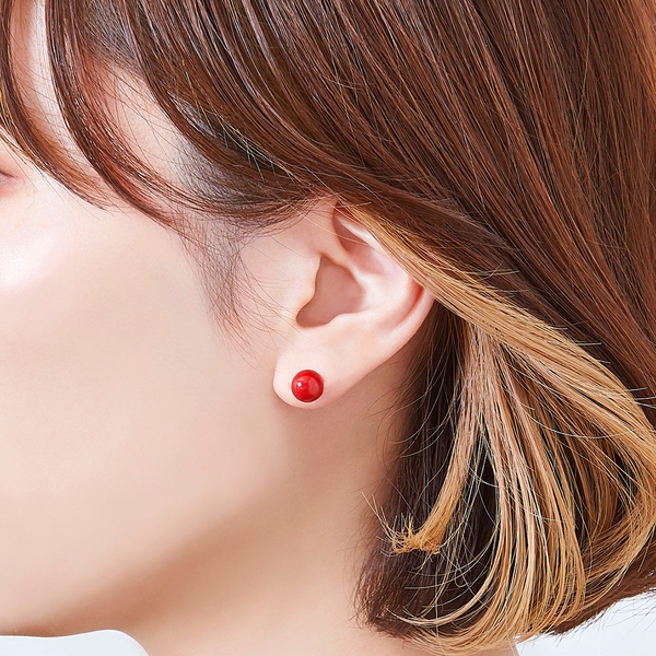合金素材に赤い樹脂を使用し、ポスト、キャッチ部分はステンレス素材の仕様です。