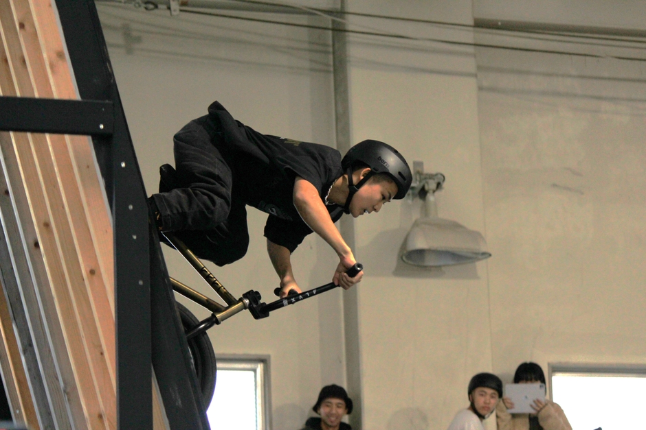 BMXフリースタイルの高校生ナンバー1を競う「第1回全国高校BMXフリースタイル選手権大会」(一般社団法人全日本フリースタイルBMX連盟主催)が12月10日、岡山市北区の岡山理科大学附属高の室内大型パークで開催されました。熱戦の末、高校生男子は湘南工科大学附属高3年、溝垣丈司選手、女子は第一学院3年、内藤寧々選手が初代優勝者に輝きました。