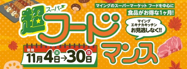 11月のマイングは“食”が主役!おいしいものが勢ぞろい&毎週うれしい特典がたくさんです。