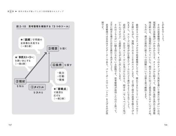 しかし、本書の新しいところは、自分の頭の中だけでなく、「他人の頭の中」を思考整理し、相手がモヤモヤから抜け出すのをサポートすることができる点です。