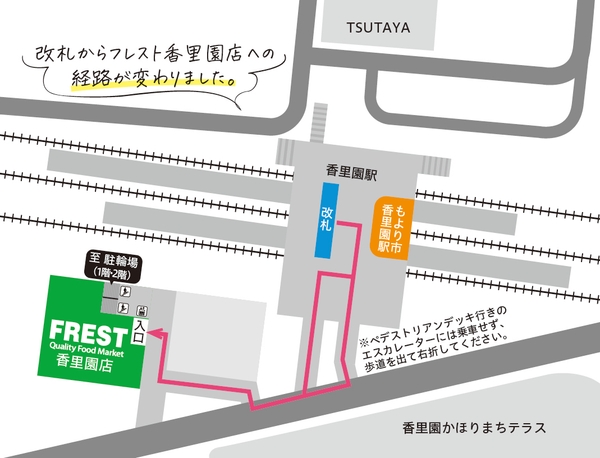 同店は、2000年11月にフレスト第2号店として京阪電車「香里園駅」構内に開業し、長年地域の皆さまにご愛顧いただきましたが、「京阪本線(寝屋川市・枚方市)連続立体交差事業」に伴い2021年12月末に閉店。以降は、店舗規模を大幅に縮小し、同駅構内で営業してまいりましたが、今般、新しく建設された香里園駅仮駅舎に移転・増床し、リニューアルオープンいたします。
