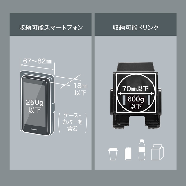 多様なドリンクに、スマートフォンの厚さに合わせてスライド調整が可能