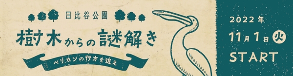 都会の真ん中にありながら自然豊かな日比谷公園の樹木を謎解き方式で巡る、セルフガイドコンテンツ「日比谷公園 樹木からの謎解き~ペリカンの行方を追え~」が、2022年11月1日に都立公園スマートフォンアプリ「TOKYO PARKS PLAY」の新コンテンツとして登場!(謎解き制作:慶應義塾大学謎解きサークル「K-dush2」)