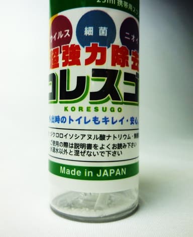 水道水に溶かすだけでウイルス除去率99.9%の次亜塩素酸系除菌剤ができる! 「コレスゴ!」からトイレ便座用の携帯スプレータイプ新発売