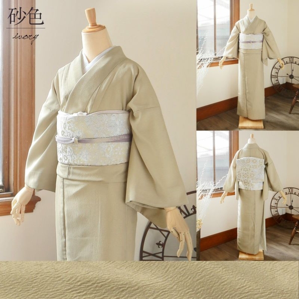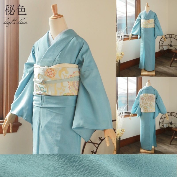 今回ご紹介した色無地と同生地を使用した二部式着物もあります。帯を締めず、紐で結ぶタイプの着物です。