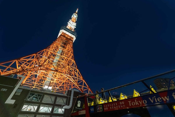 バスは大手町を出発し、皇居や国会議事堂のある霞が関、著しい発展を見せる虎ノ門エリアを抜け、東京タワーへと向かいます。その後、東京タワーの近くで10分ほど停車するため、ライトアップされた東京タワーの造形美を間近で眺めることができます。往復約1時間のバスクルーズで、東京の歴史を感じさせる景色と今も進化を続ける街並みの両方を楽しめます。
