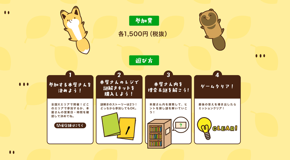 本屋巡り謎解きゲーム 「タヌキとキツネのかくれんぼ編」「タヌキとキツネのひなたぼっこ編」
