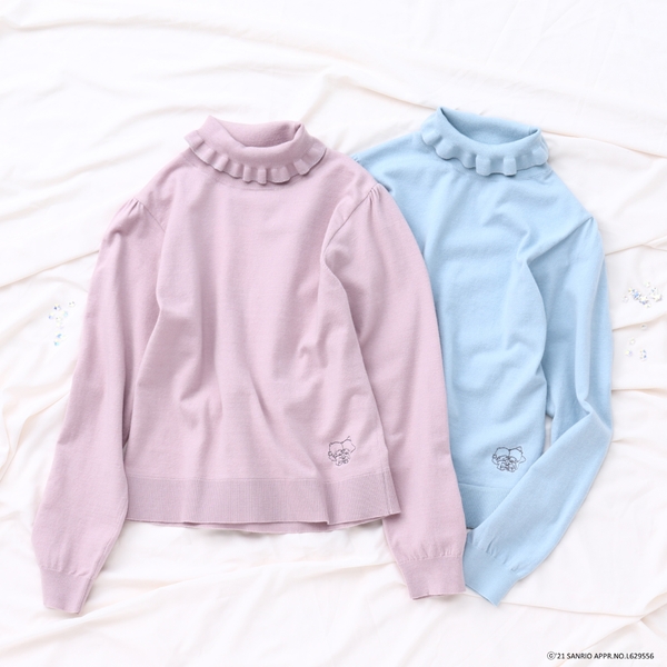 冬の定番タートルネックニットは、タートル部分をフリル仕様にすることで可愛らしさをプラス。身体の線を拾わないシルエットは、レイヤードもしやすいサイズ感です。腰部分に寄り添うキキ&ララの愛くるしい刺繍が施されています。