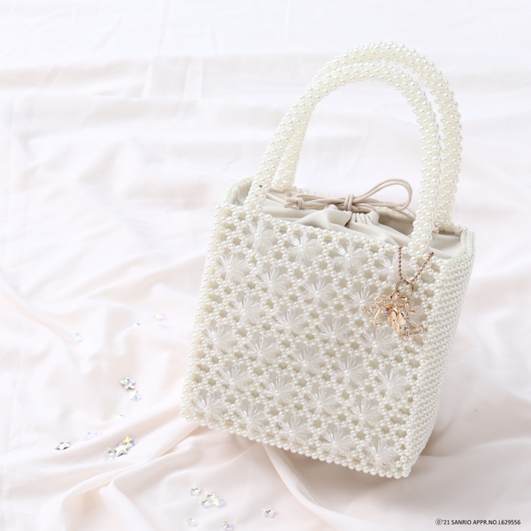 「クチュール ブローチ」で定番人気のパールトートをアップデート。フラワーモチーフのビーズとパールのバッグにキキ&ララモチーフのチャームが付きます。
