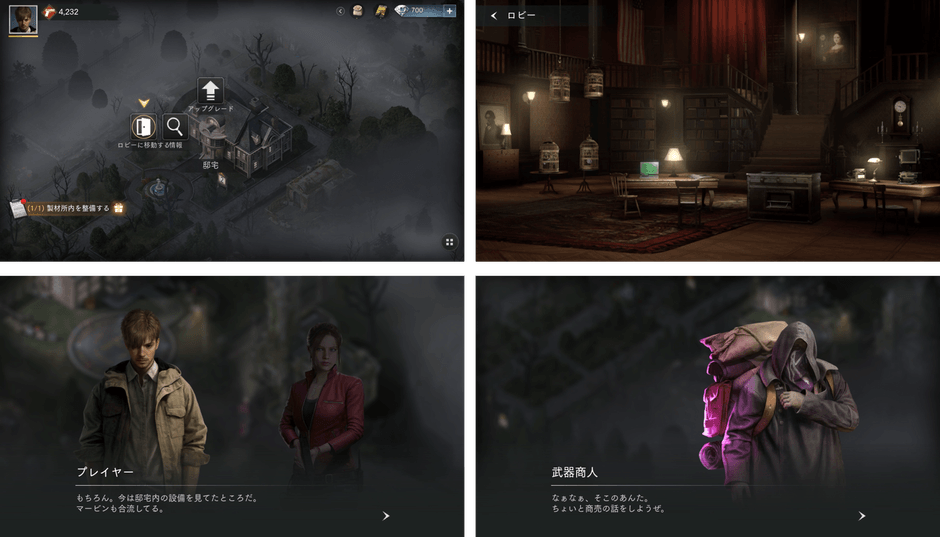 ストラテジーゲームの名において重要な、プレイヤーの拠点となる「邸宅」および「本拠地」は、キャラクターたちが実際に生活する空間でもあります。会話イベントやバイオハザードの世界観を彷彿とさせる内装・小物など、ファンにはたまらない演出が満載。 また、拠点内では原作シリーズにも登場する「武器商人」からアイテムを購入することも可能。戦闘や探索に必要な装備を整え、次なるミッションに備えることができます。入念な準備と緻密な戦略こそが、生き残りを左右するカギとなります。