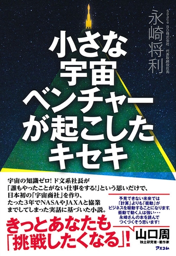 民間による宇宙事業に注目が集まるなか、アスコムは、日本初の「宇宙商社」を設立した株式会社Space BDの代表取締役社長・永崎将利氏を著者としたビジネス小説『小さな宇宙ベンチャーが起こしたキセキ』を発売しました。