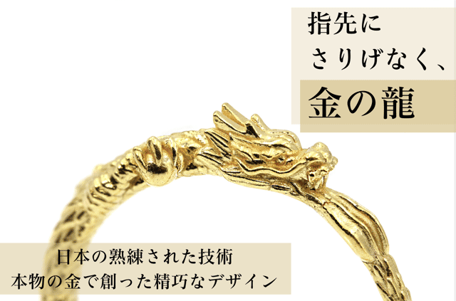 カッコよく、美しく、でもさりげなく着けられる「7色の金の龍」のリング。