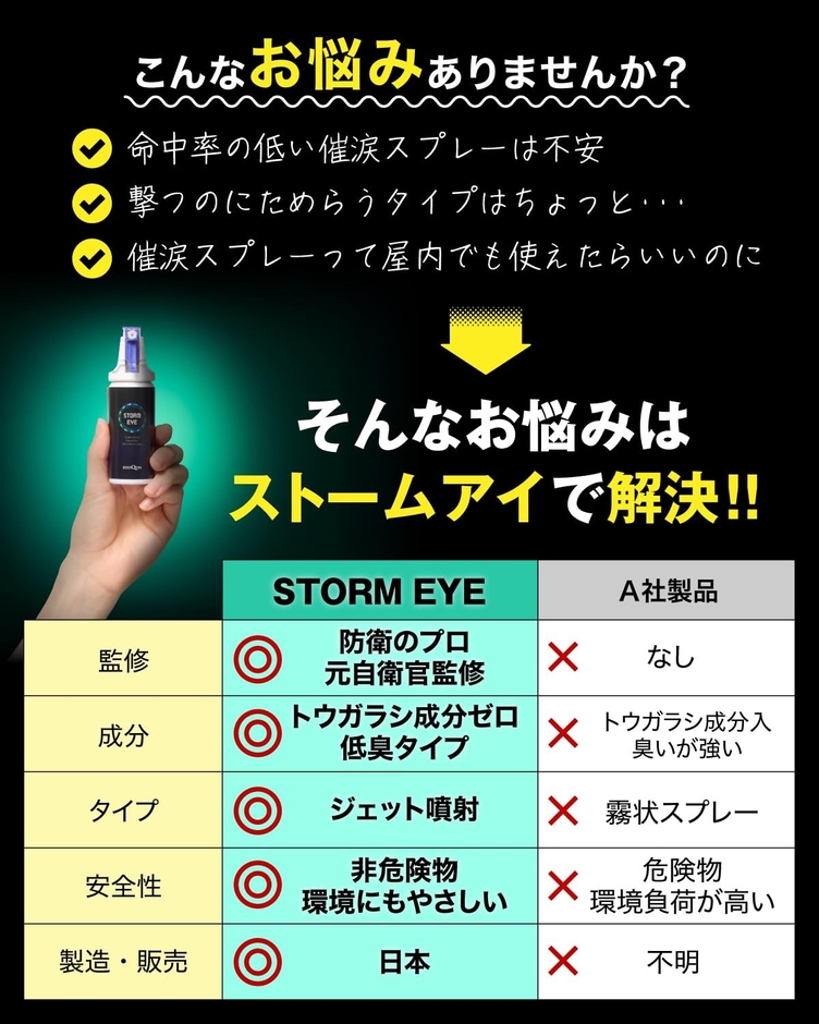 ■2025年8月にamazonより発売開始した防犯スプレーSTORM EYE(ストームアイ)が、