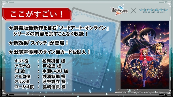 ビルディバイドTCGに『ソードアート・オンライン』参戦決定! タイアップブースターは2023年4月28日発売!新規描き下ろしイラストやキャストによるサイン箔カードが登場!