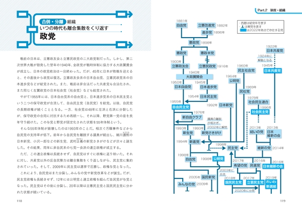 そこで、企業、組織・団体をはじめ、エンタメ、芸事、スポーツ、歴史、宗教、学術まで、知識欲がそそるオールジャンルの離合集散を完全網羅しました。
