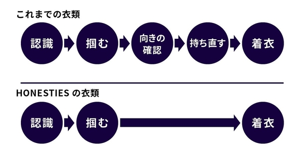 生活をちょっと楽にする衣服をコンセプトとして、世界初の「裏表がない」+「前後もない」スマート肌着などをリリースし、TVでも話題となり国際的なユニバーサルデザインの賞やグッドデザイン賞も受賞するHONESTIES株式会社(代表取締役社長 西出喜代彦)が、肌着・靴下・パンツに続いて、長年の構想であった新製品をリリース。